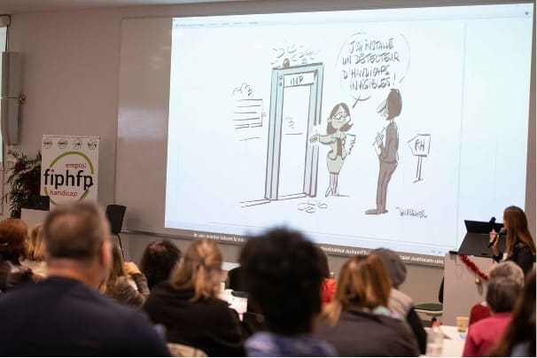 Extrait du séminaire organisé à Toulouse pour les 20 ans du FIPHFP, mobilisant un dessinateur graphique (@Duverdier)